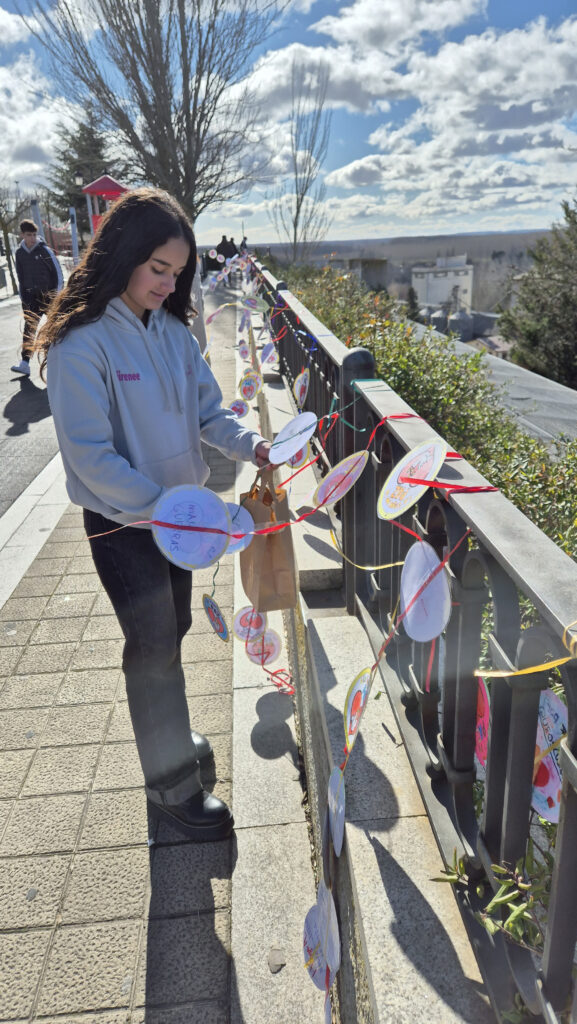 Además, nuestros alumnos de 4º ESO dejaron en el parque de La Mota las guirnaldas con mensajes de paz hechas por todo el alumnado del colegio.