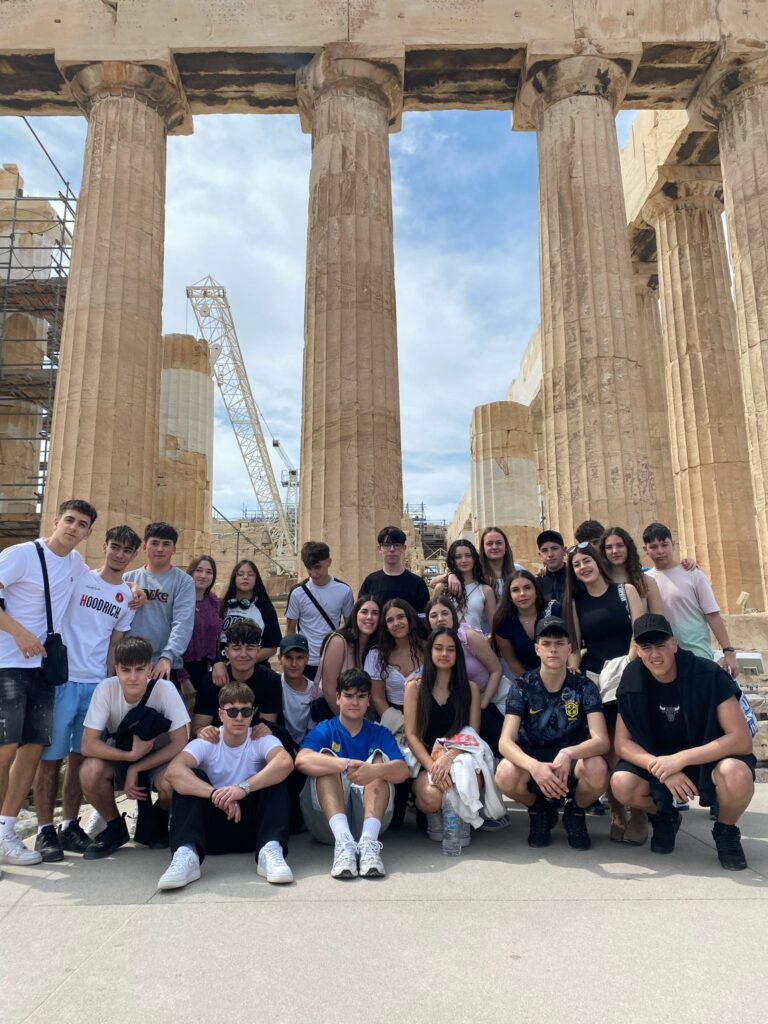 Los alumnos de 4º ESO han disfrutado en estos últimos días de su viaje de fin de curso a Grecia. A lo largo de este viaje han visitado sitios emblemáticos de la cultura helena como la Acrópolis de Atenas y el casco antiguo de la ciudad, el teatro de Epidauro, el santuario de Delfos o la antigua ciudad de Micenas. Además, han acudido a diversos museos como el Museo Arqueológico Nacional, el Museo de la Guerra o el de la Acrópolis.